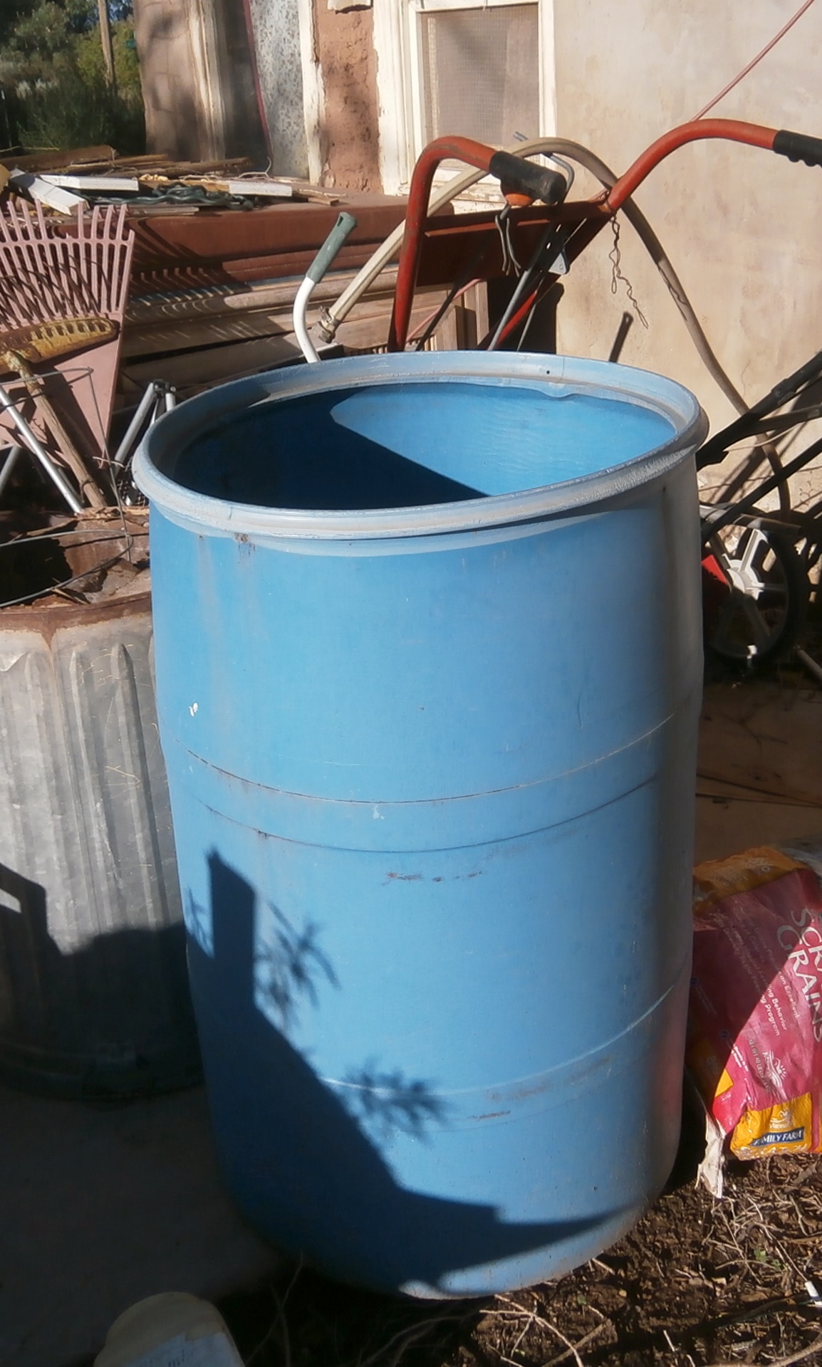 There was one consideration I overlooked, however. Although I did not want all of what was left being decimated, I did not wish harm to the critters. I did not realize that I inadvertently created a deadly booby-trap. Next to the house I had blue barrels in which I collect rain water. One of the barrels was almost full.
